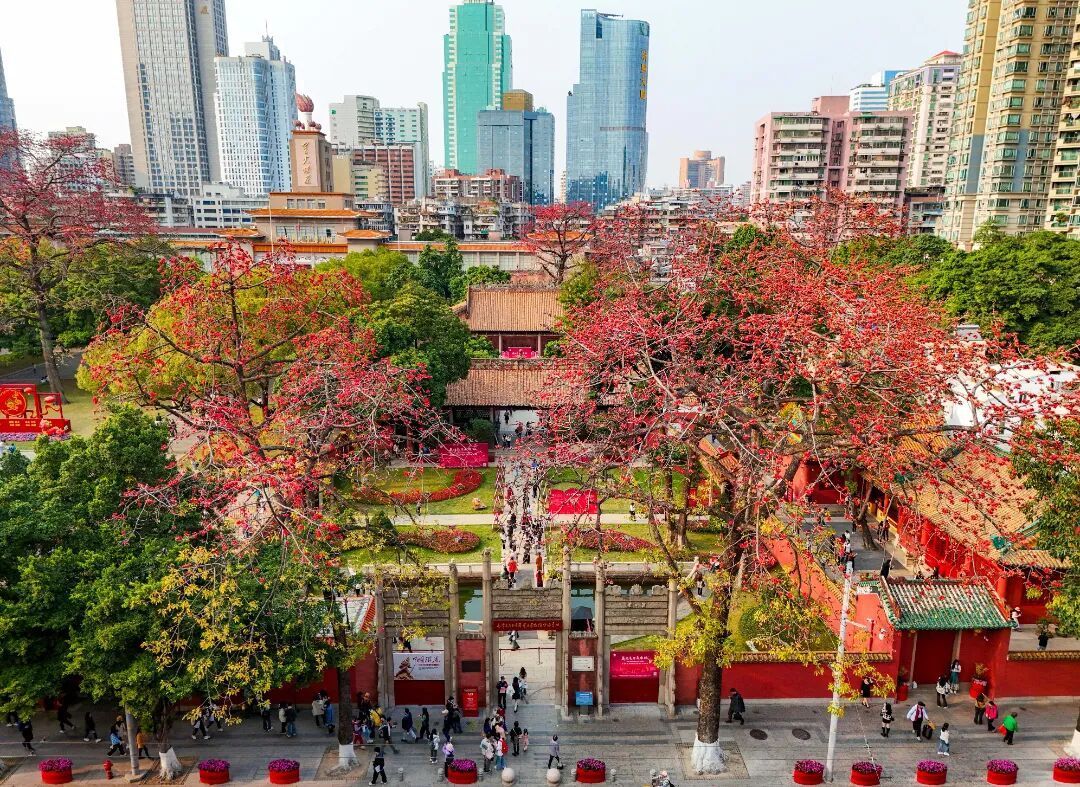 花城看花,二月的越秀街头繁花盛放,为新春增添几分绚烂。木棉缀于檐边、街道旁,殷红似火,挺拔向上,一如岭南儿女的英雄气概。